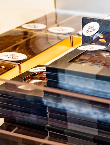 En plus des pâtisseries, nous préparons également des chocolats et pralinés maison. Nous vous les proposons sous plusieurs formes : tablettes avec ou sans garnitures, en sachets, et même sous forme de bourriches d’huitres en chocolat.